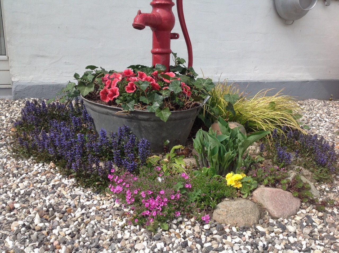 Lige nu er det lille bed ved vandpumpen det smukkeste syn af glade farver 😊