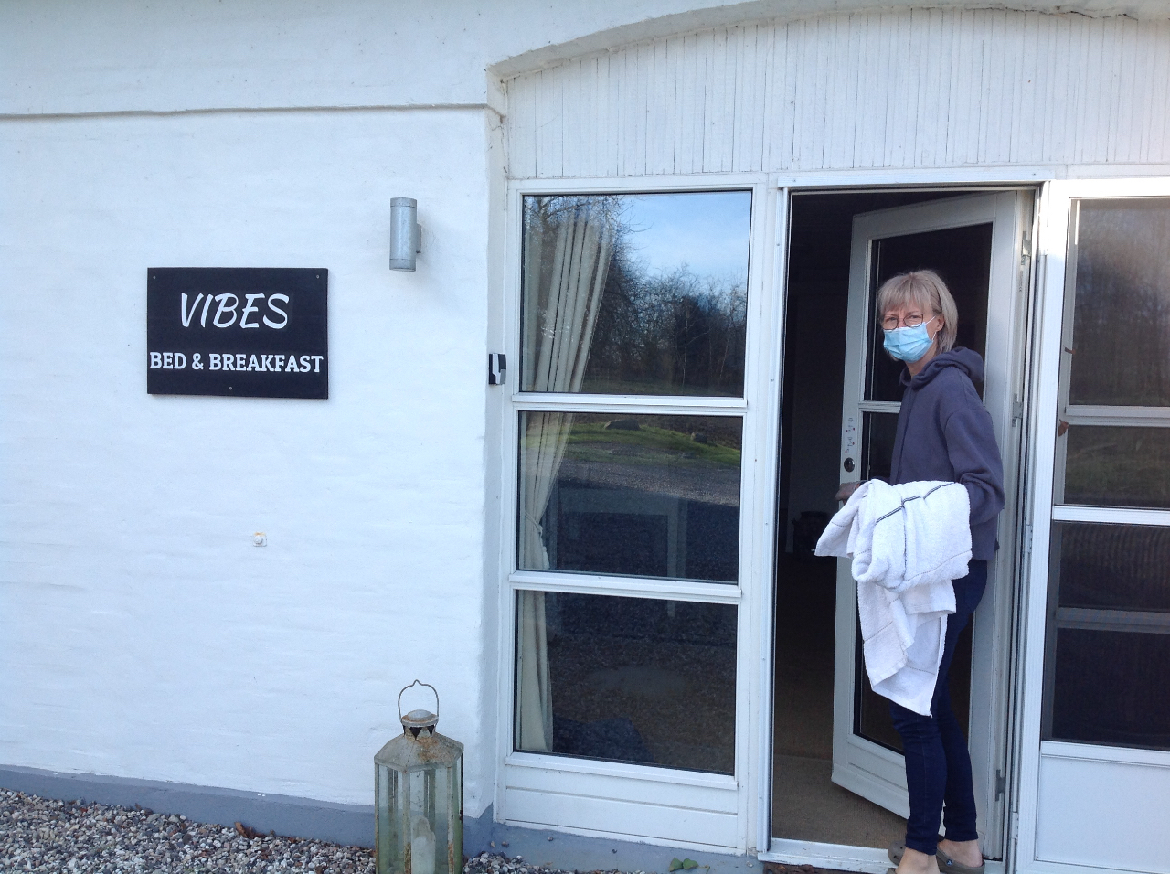 Det er ikke helt det samme at skulle tage imod gæster iført mundbind og med et par meters afstand! Den nonverbale kommunikation går tabt: smilet, øjnene der mødes i et håndtryk. Men man må jo indrette sig på nye tider, og få det bedste ud af situationen. Og glæde sig til igen at kunne mødes ansigt til ansigt.
