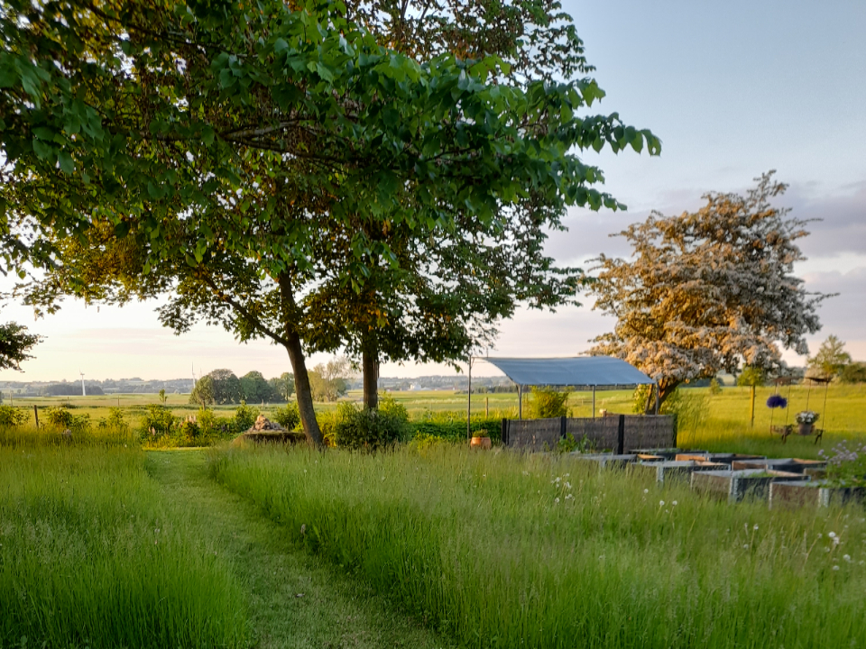Græsklipningen er reduceret en del igen i år. Der bliver kun slået stier imellem græsset. Så er der mere at finde for insekterne, og mindre arbejde til os. Ren win win 🙂